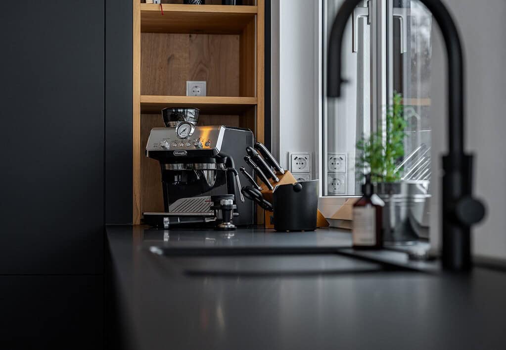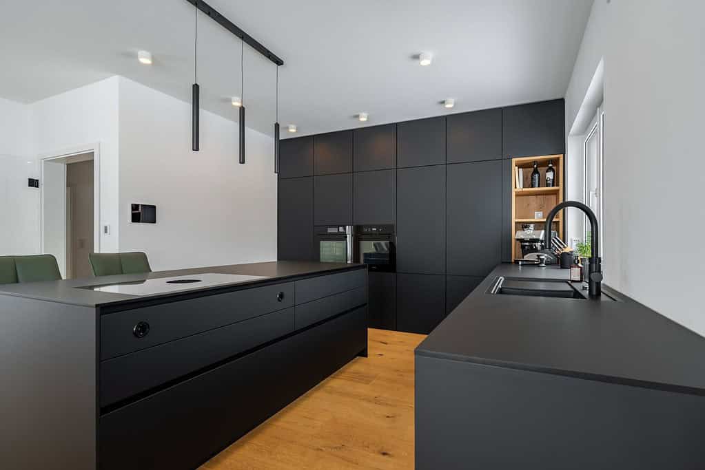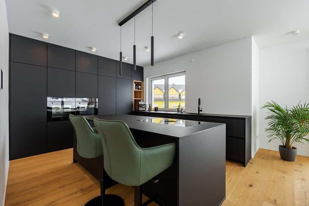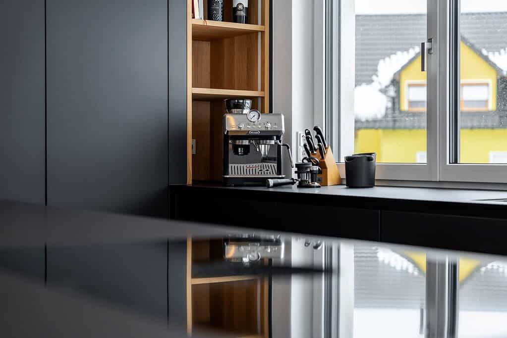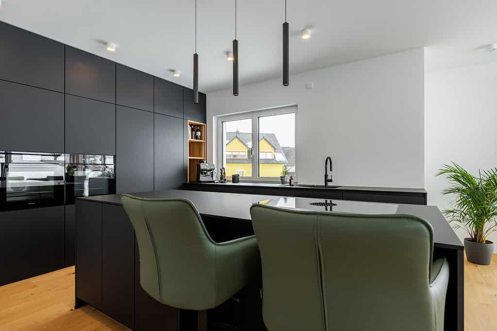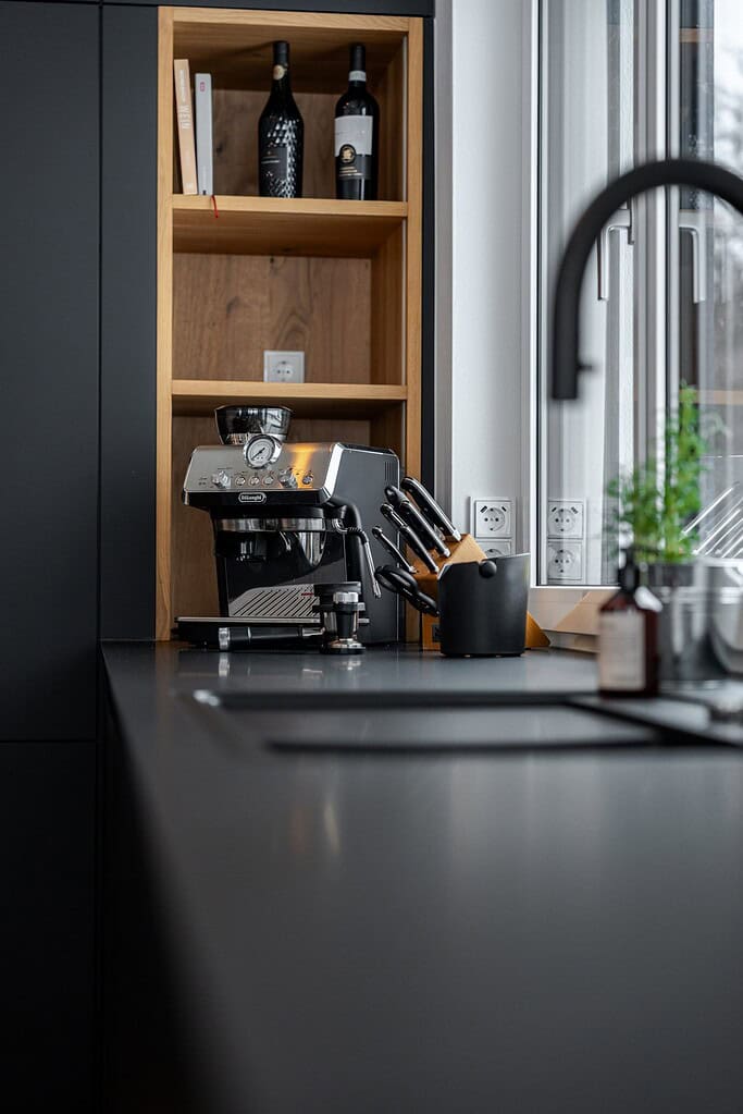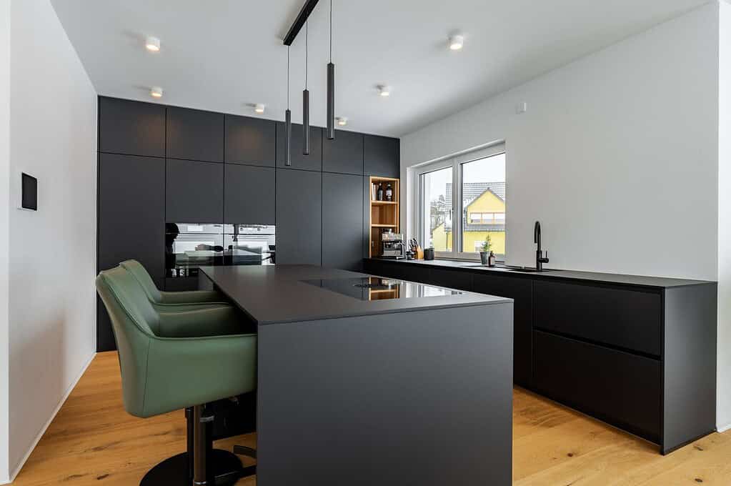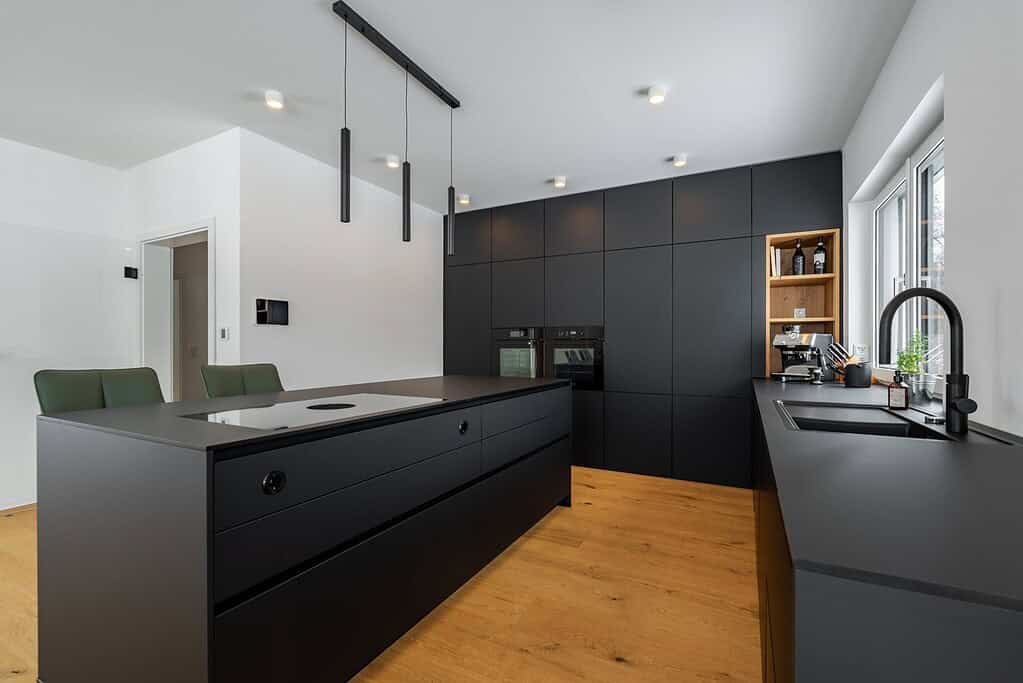 We were able to realize an impressive black FENIX kitchen with a spacious kitchen island for our customer. The aim was to combine a modern, clear design with maximum functionality.