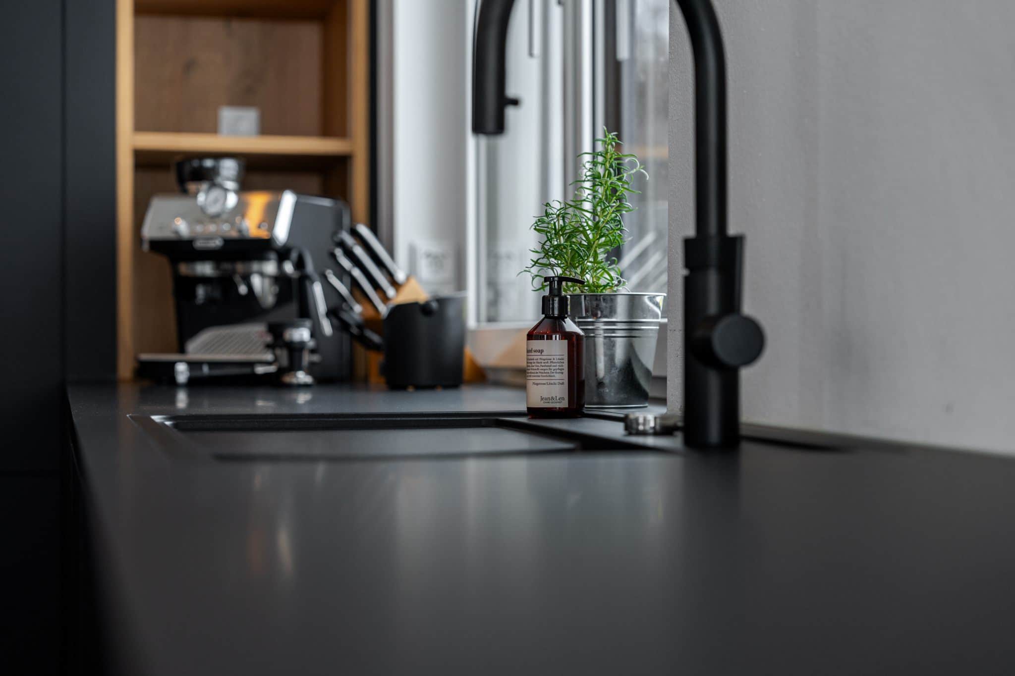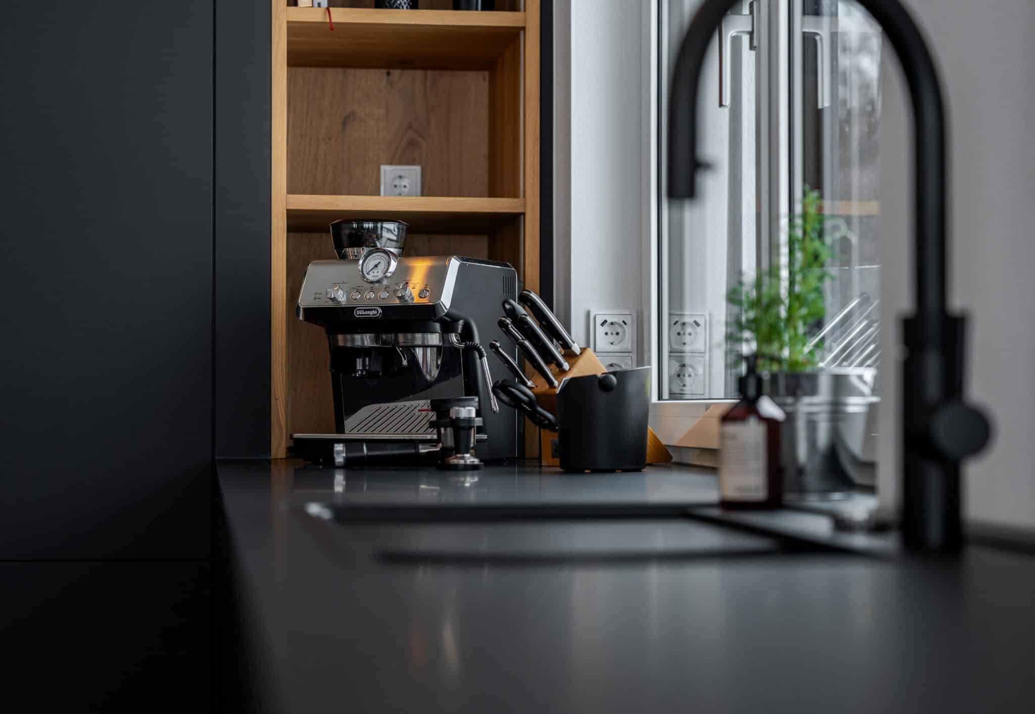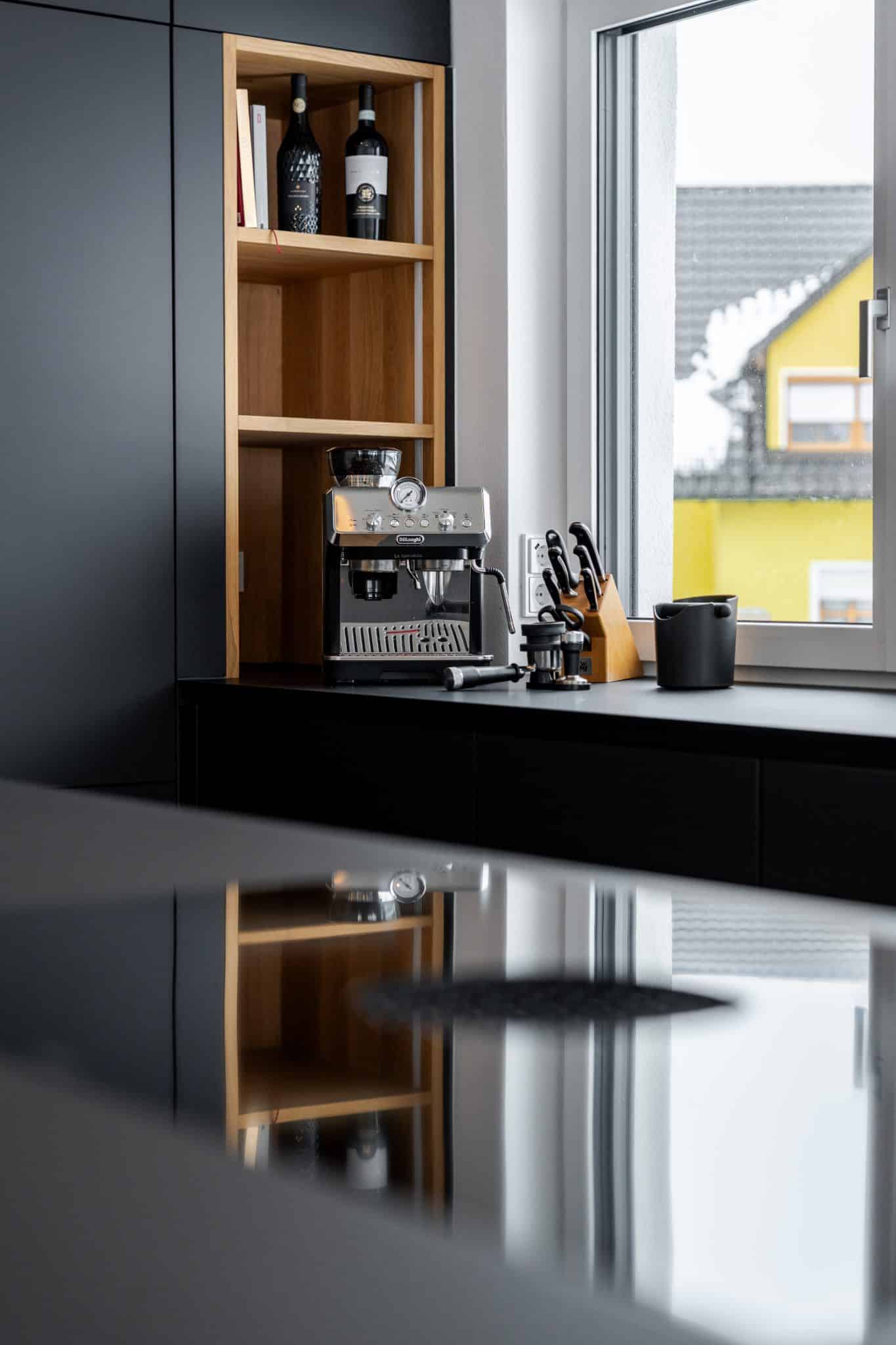 Durch durchdachte Stauraumlösungen und die stilvolle Integration moderner Geräte entstand eine langlebige, praktische und zugleich exklusive Küchenlösung – puristisch, hochwertig und bis ins Detail perfekt umgesetzt.